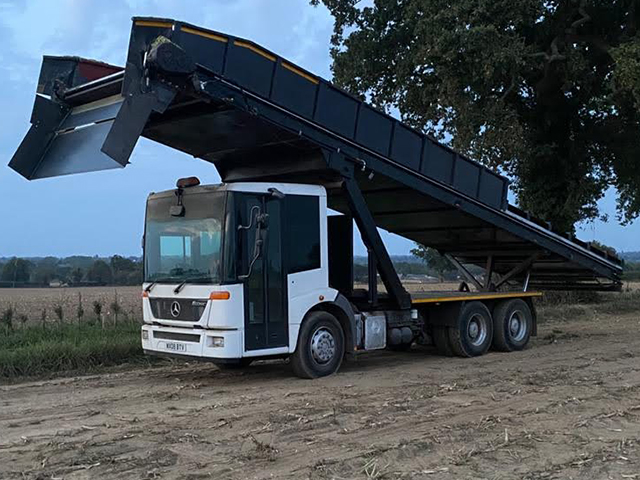 The Larrington Elevator Truck allows crops to be loaded directly in to a road waiting vehicle, keeping the mud in the field and the roads clean (AND SAFE !)